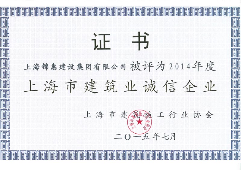 當前位置:主頁(yè) > 企業(yè)榮譽(yù) > 企業(yè)榮譽(yù) >上海市建筑業(yè)誠信企業(yè)證書(shū)