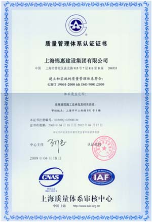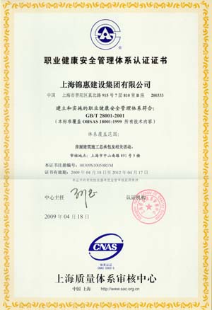 2009年2月,上海質(zhì)量體系審核中心對錦惠公司的質(zhì)量、環(huán)境和職業(yè)健康安全管理手冊和程序文件實(shí)施審核,通過(guò)了上海質(zhì)量審核中心ISO9001:2000、ISO14001、GB/T28001“三標一體化”管理體系認證的復評審核。