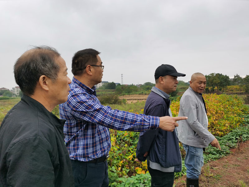 (賴(lài)富榮董事長(cháng)在水亭畬族鄉鄉長(cháng)鐘秀明(左二)陪同下,實(shí)地踏勘了已完成土地流轉即將交付的土地)